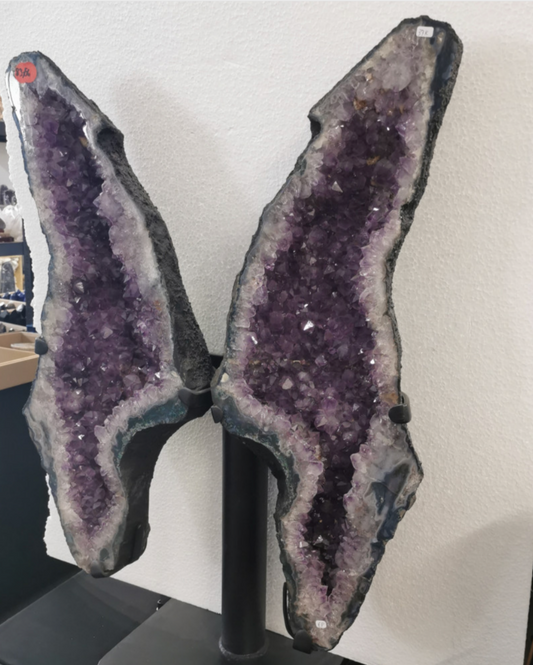 Paire de géode 'papillon' de 83x56cm - 37 kg, vendu avec socle. Superbe qualité AA, Brésil !