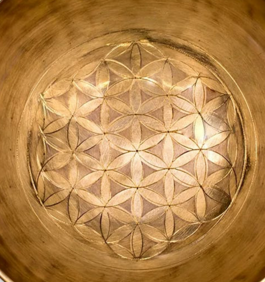 Bol chantant gravé de la Fleur de vie, au choix de 20 ou 21 cm - 950 ou 1200 gr. Vendu avec maillet adapté ! Magnifiques pièces !