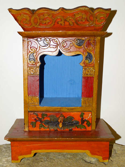 Sélection d'Autel en bois avec tiroir, peint à la main au Népal. 2 modèles au choix : 16.5x22x14 cm ou 36x22x9. Très belle qualité, motifs typiques !