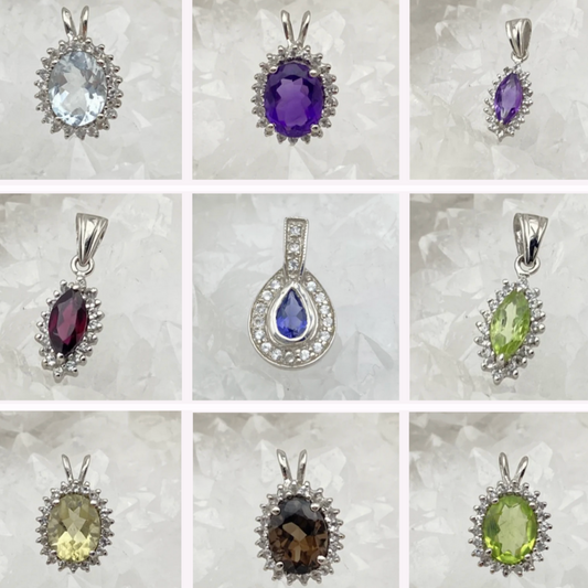 Collection Retro' | Pendentif en Argent serti d'une pierre 'gemme' en : Aigue-Marine - Améthyste - Grenat - Iolite - Péridot - Quartz fumé ou Lemon !