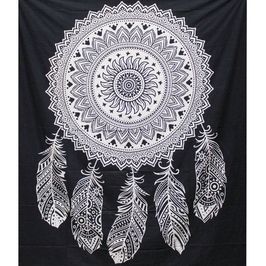 Dessus de Lit Double/ Tenture noir et blanc - Capteur de Rêve - 230 x 200 cm - 680 gr.