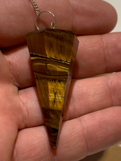 Pendule en œil de tigre, forme conique facettée. Pour la radiesthésie, adapté aux professionnels comme aux débutants, parfait !
