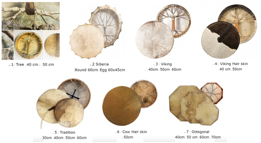 Sélection de tambours Chamanique, modèles au choix de Ø 30, 40, 50, 60 ou 70 centimètres. Très bonne qualité, parfait pour découvrir ou se perfectionner. Vendu avec maillet adapté de 40 centimètres, parfait !