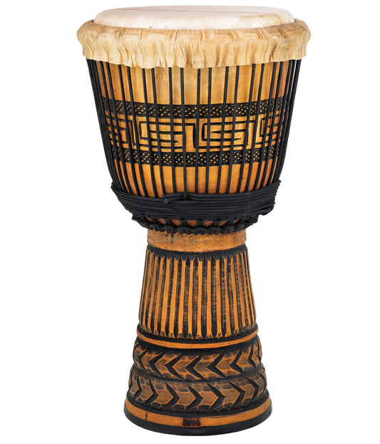 Prix habituel À partir de €237,70 EURPrix habituelPrix unitaire / parPrix promotionnel À partir de €237,70 EURDjembé sculpté spécial basse, en bois d’acajou et peau de chèvre, au souffle profond et vibrant grâce à son anneau bass reflex !
