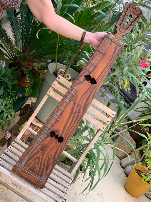 Epinette des Vosges, authentique instrument ancien en bois, prêt à jouer, livrer sans housse. 100 cm x 17 x 7 avec 5 cordes sympathique + 5 cordes de jeux !