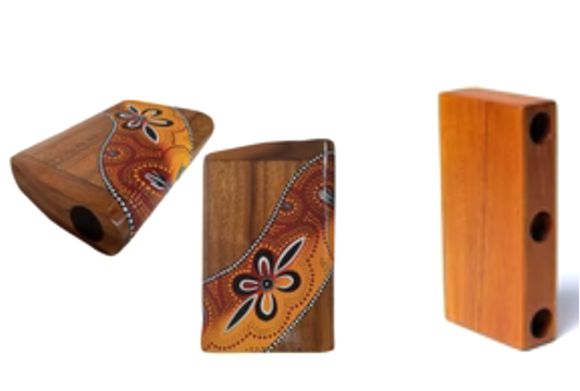 Didgeridoo de voyage en bois, 23x17x6 cm - 450 et 570 g. Accordages au choix, parfait pour le transport, prend peu de place !