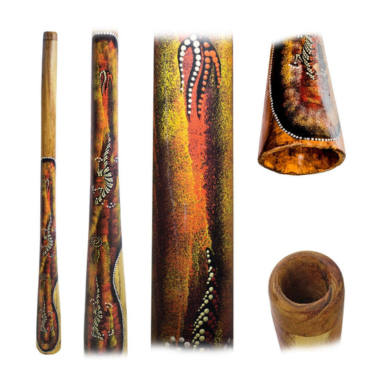 Didgeridoo en bois d’eucalyptus de 1,47 m — base évasée, magnifiques décorations faites main !