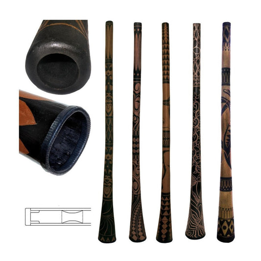Didgeridoo en bois d'eucalyptus, 2 tailles au choix : 1,50 ou 1,73 m - 2,50 et 3,10 kgs. Accordage au choix (housse incluse)