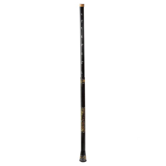Didgeridoo en bambou avec décoration authentique. Modèle à coulisse/ téléscopique afin de régler la note, taille 1,20 m - 0,85 kgs. Parfait pour les voyages, très léger !