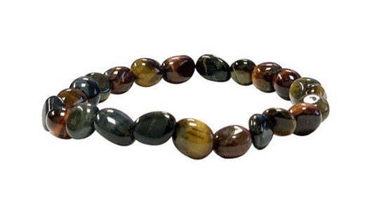 Œil de Tigre/ Œil de Taureau/ Œil de Faucon, bracelet de 17 à 21cm, collier de 42cm et sautoir de 60cm. Perles de type 'Graine' de formes naturelles montées sur fil de haute résistance !