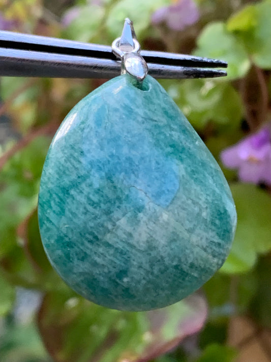 Amazonite, pendentif de 40mm de hauteur x 24 de largeur x 10 d'épaisseur. Vendu avec cordon réglable de couleur noire offert !