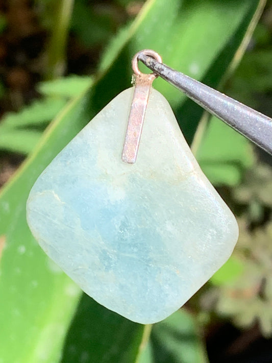 Aigue-marine, pendentif Argent avec fantaisie en métal ! Pièce unique de 38mmx12 x 12. Vendu avec cordon réglable de couleur noire. Fait au Pakistan !
