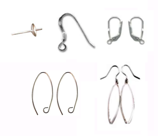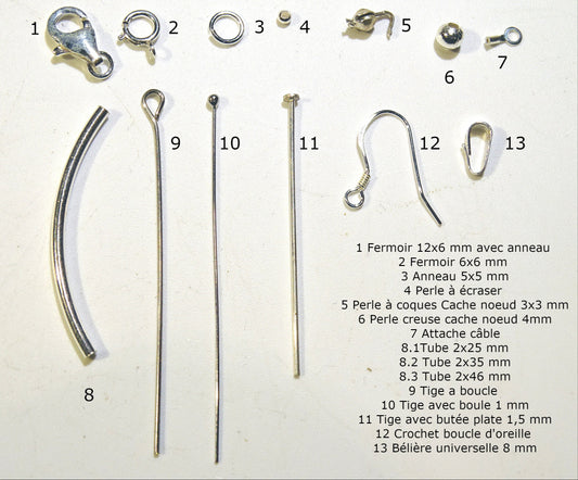 Les principaux apprêts en Argent 0,925 pour vos créations et réparations ! Fermoirs, anneaux, perles, tiges, bélières, bou cles d'oreilles. Très bonne qualité !