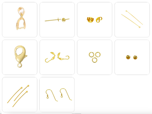 Sélection d'apprêts plaqués Or 3mm, fermoir, tiges, anneau, chaîne, puces d'oreilles... Très bonne qualité, parfait pour vos créations ou pour réparation !
