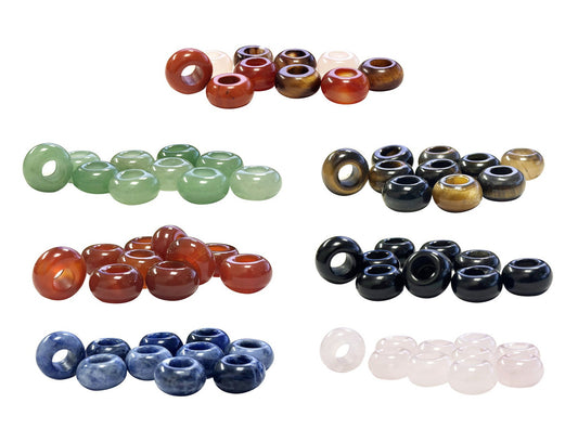 Perles en pierres naturelles de 14 millimètres de diamètre avec un trou d'environ 6 mm. Parfait pour vos projets de bijoux, macramé. Disponible en Sodalite, Œil de Tigre, Quartz Rose, Aventurine, Onyx, Cornaline ou bien en assortiment. Vendu par 10 !