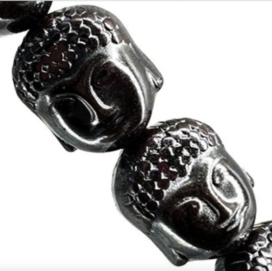 Fil de perles 'tête de Bouddha' en pierre d'hématite, pour création de bracelets, colliers, Mala... De 40 centimètres x 8 millimètres... Très bonne qualité, parfait pour adapter vos créations préférées !