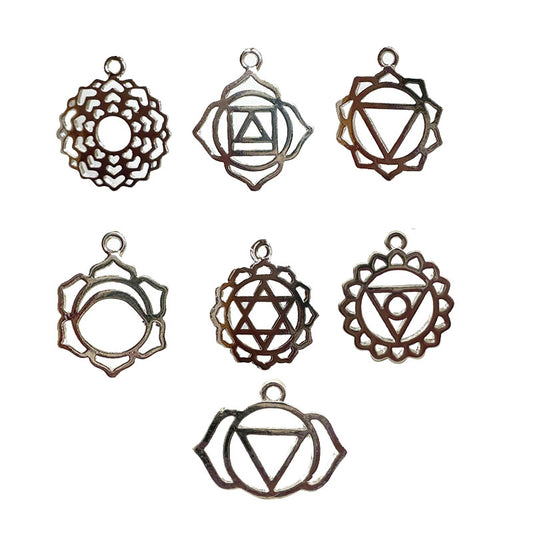 Apprêts, pendentifs/ breloques 7 chakras de 14 millimètres. En bronze. Vendu en lot de 3 x 7 pièces !