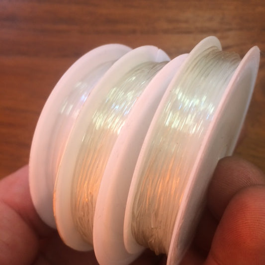 Sélection de fils divers 'spécial bijouterie' : Fil élastique transparent 8mm ou 10mm, ou couleurs 8mm. Bobine de fil en cordon de coton ciré noir de 15mm (bobine de 7 ou 450m.) !
