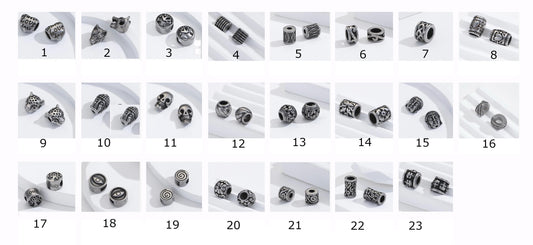 Sélection de perles avec gravures et formes diverses en acier inoxydable de 'haute qualité' pour la création de bracelets, colliers, Mala... De 8 à 20 millimètres - 23 Modèles au choix vendu à l'unité ou par 5 pièces !