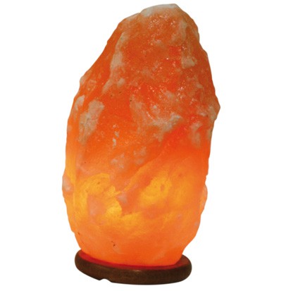 Lampe en sel à prise USB, forme brute sur socle en bois d'acacia. Provenance : Inde. 9 cm - 600 gr.