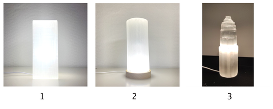 Lampe en Sélénite – formes rondes, carrées ou monolithes (20 à 40 cm), livrée avec cordon et ampoule !