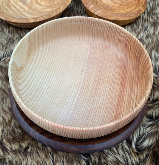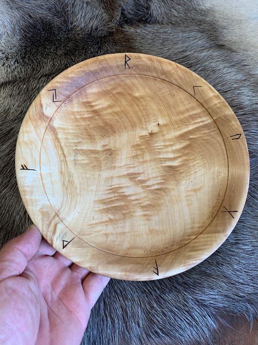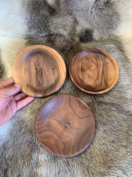 Grande assiette en bois avec ou sans gravure de Runes, 200 mm de diamètre x 30 de haut - 350 grammes. Fait main en France (19), très belle qualité, magnifique pièce !