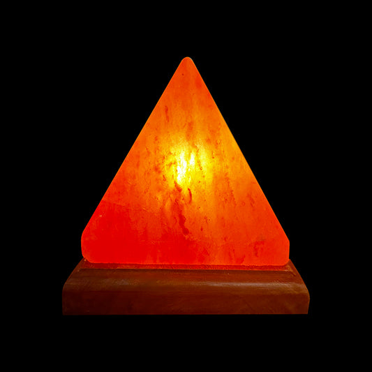 Lampe en sel, en forme de pyramide sur socle en bois d'acacia. Provenance : Inde. 12.50 cm - 1300 gr. !