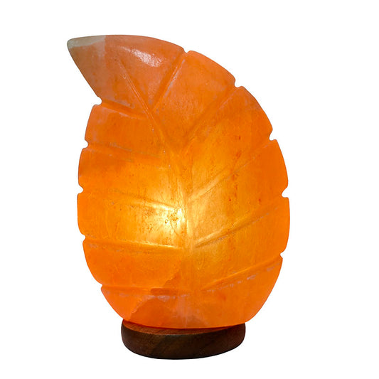 Lampe en sel en forme de Feuille avec carton blanc et système éclairage. Lampe livrée avec branchement et ampoule.