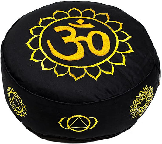 Coussin de mĂ©ditation ou de yoga avec motif Om à„ - 33Ă17 cm - 2300 g â Yogi & Yogini, fabriquĂ© en Inde !