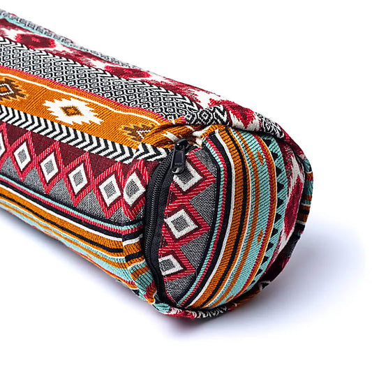 Coussin / Bolster / Traversin de Yoga et Méditation - Motif AztÚque - 60 x 16 cm - 2,365 kg. Housse extérieure en coton | Garnissage naturel en cosses de sarrasin !