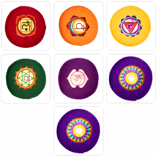 Sélection de coussins au choix pour Yoga et Méditation - Motifs 7 chakras - 33x13 cm - 2,3 kg. Housse extérieure en coton | Garnissage naturel en cosses de sarrasin !