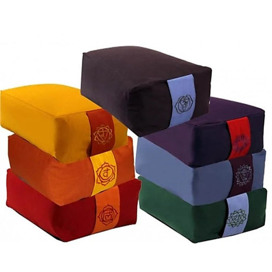 Coussin/bolster de méditation et de yoga - 7 chakras — 38 × 28 × 13 cm, en coton biologique (OCS) — fabriqué en Inde par Yogi & Yogini !