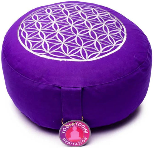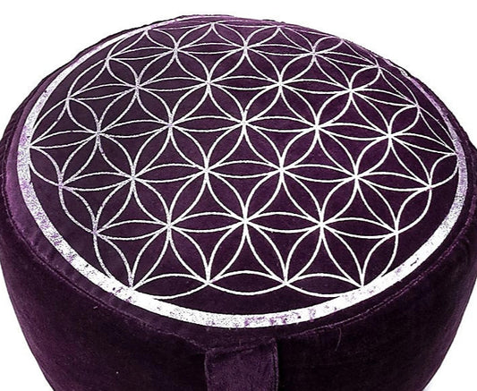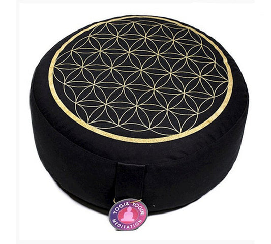 Coussin de méditation ou de yoga avec motif de la Fleur de Vie — 33 cm de diamètre × 17 cm de hauteur, 2300 g — Yogi & Yogini, fabriqué en Inde !