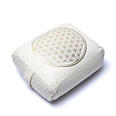 Coussin/bolster de méditation et de yoga — 38 × 28 × 13 cm, motif de la Fleur de Vie, en coton biologique (OCS) — fabriqué en Inde par Yogi & Yogini !