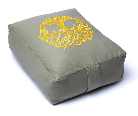 Coussin/bolster de méditation et de yoga — 38 × 28 × 13 cm, motif de l'Arbre de Vie, en coton biologique (OCS) — fabriqué en Inde par Yogi & Yogini !