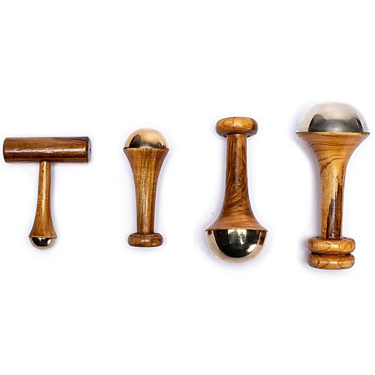 Ensemble de massage : 3 outils manuels en bois de santal – Livré avec un sac en coton naturel !