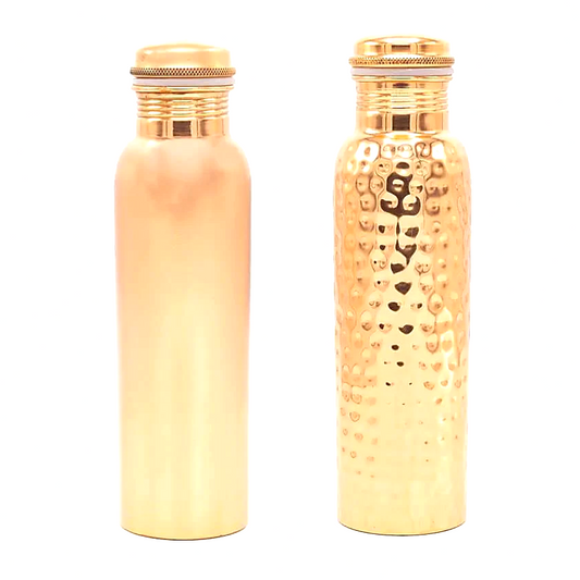 Bouteille en cuivre (Tamba) - 2 finitions au choix : lisse ou martelée - 0,9 L – 350 gr - Fait en Inde !
