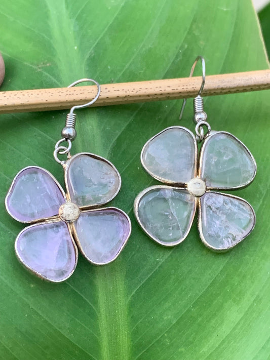 Boucles d'oreilles en Améthyste, en formes de 'trèfle à 4 feuilles', qualité AA à AAA. Finition laiton argenté, parfait !