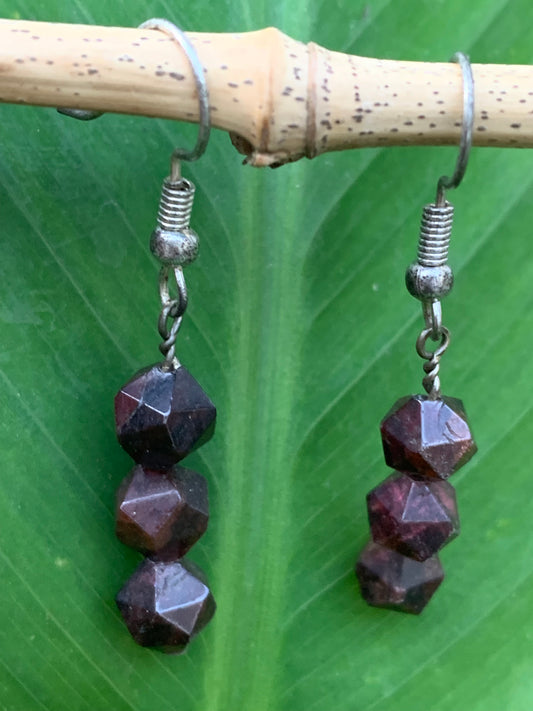 Boucles d'oreilles en Grenat Almandin, en perles icosaedre, qualité AA à AAA. Vendu en finition Argent, parfait !