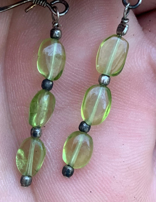Boucles d'oreilles en Péridot, perlages sur tiges avec fantaisies, qualité AA à AAA. Vendu en Argent ou en laiton finition argenté ou doré, parfait !