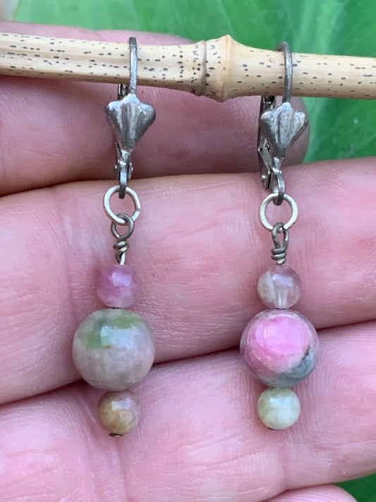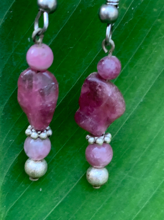 Boucles d'oreilles en Tourmaline rose (Rubellite), 3 perles sur tige en métal, qualité AA à AAA. Vendu en Argent ou en laiton finition argenté ou doré, parfait !