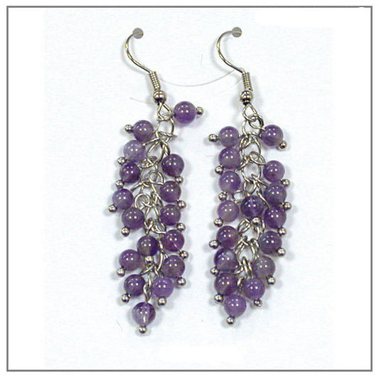 Boucles d'oreilles en Améthyste, plusieurs perles de 4mm en forme de grappe, qualité AA à AAA. Vendu en finition Argent ou laiton argenté, parfait !