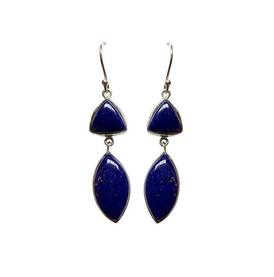 Boucles d'oreilles en Lapis lazuli, cabochon sertis en formes de 'triangle navette', qualité AA à AAA. Vendu en finition Argent, parfait !