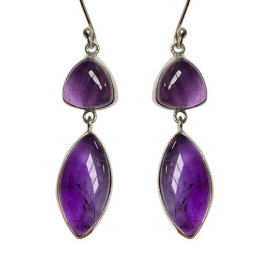Boucles d'oreilles en améthyste, cabochon sertis en formes de 'triangle navette', qualité AA à AAA. Vendu en finition Argent, parfait !