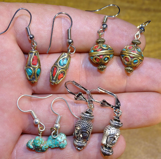 Boucles d'oreilles en perles d'Inde ( corail rouge et turquoise) sur tige en métal. Vendu en finition Argent 0.925, laiton ton argent ou doré, parfait !
