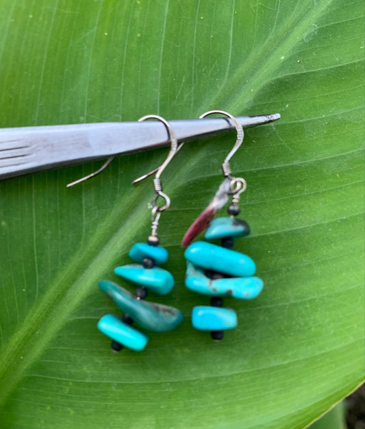 Boucles d'oreilles en Turquoise , perles 'pétales' sur tige en métal, qualité AA à AAA. Vendu en finition Argent ou en laiton argenté, parfait !