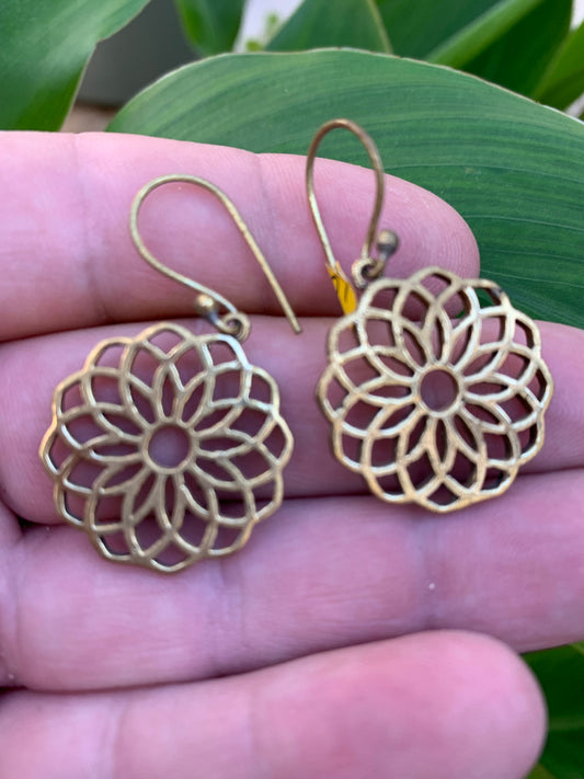 Boucles d'oreilles en forme de Mandala de 35 millimètres de diamètre, finition laiton, superbes pièces, parfait !