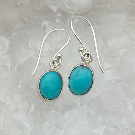 Boucles d'oreilles en Turquoise , cabochon sertis de forme ovale, qualité AA à AAA. Vendu en finition Argent, parfait !