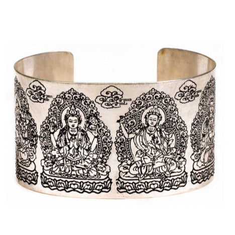 Prix habituel €17,70 EURPrix habituelPrix unitaire / parPrix promotionnel €17,70 EURBracelet pour épaule de type 'Manchette' de 7 centimètres, fait en laiton argenté, avec gravure de Bouddha ou de Tara, superbe pièce !