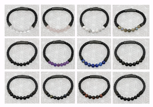 Bracelets cuir avec perles 8 mm – Collection n°3 homme/femme, fermoir magnétique, longueur 18,5 cm.